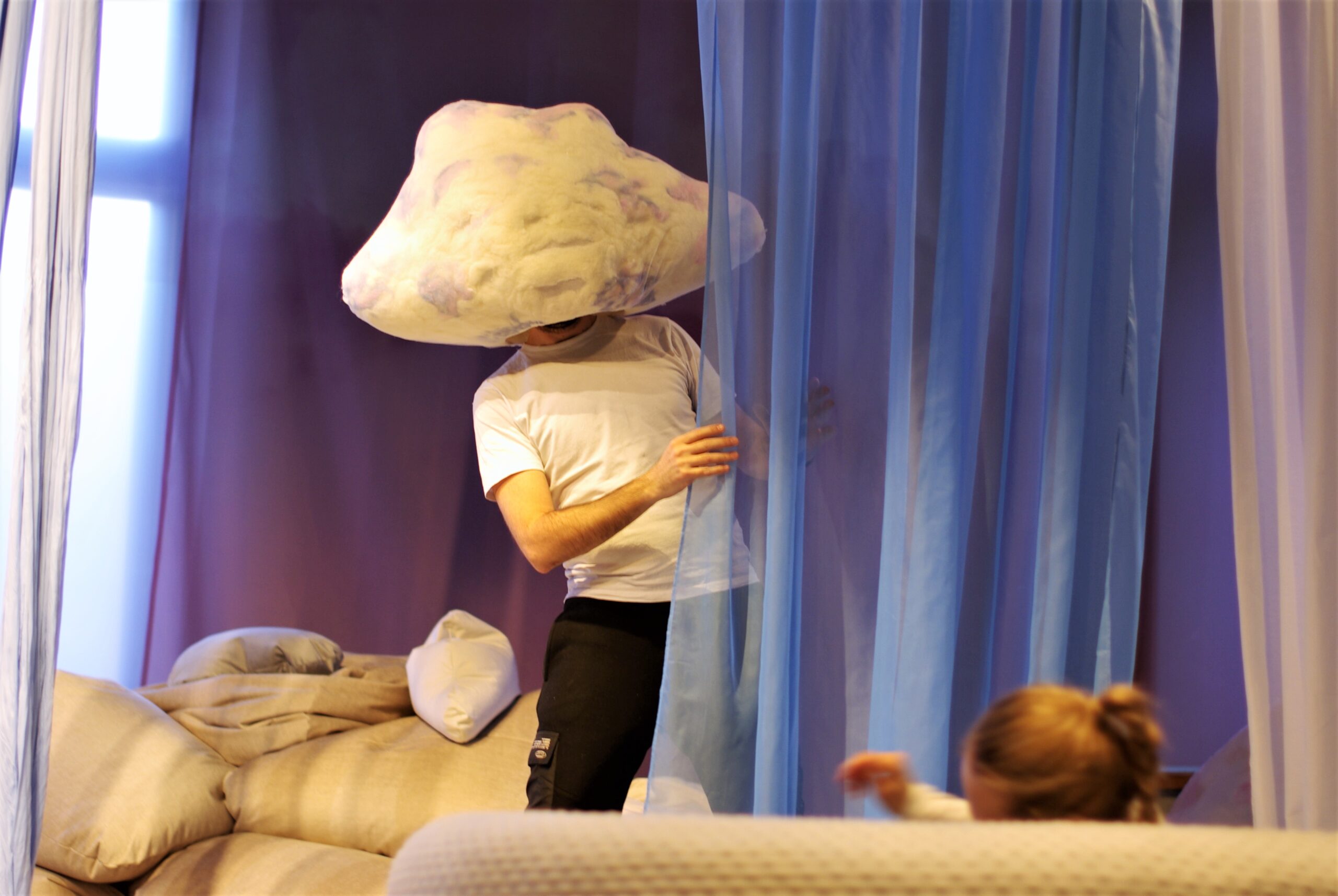 Samsara is a story, told by means of installation art, about discovering, overcoming fears, and letting go. About fear of the unknown, the stranger. Who is this stranger? What does he want from me? I don’t know if I’m ready to accept this world the way I can’t see it yet.