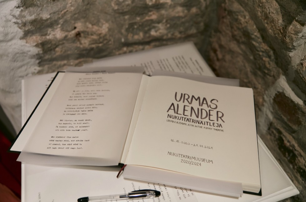 The exhibition focuses on Urmas Alender’s roles in eleven productions of the Puppet Theatre along with related excerpts from his personal diary. In the room you can hear the poem “Rahu” (Peace”), which Alender recorded himself and which he performed in the poetry reading programme staged in the Puppet Theatre, titled “Vaikusse, valgusse, puhtusse minna” (“To Go Into Silence, Into Light, Into Purity”; 1980). The programme was directed and poems and music written by Urmas Alender himself.