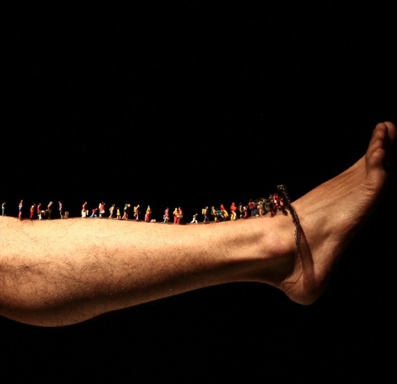 Valge põrandaga väike mänguala näeb aina enam välja nagu segamini lastetuba. Sellest hoolimata jätkatakse pisitegelaste rännakut mööda inimkeha. Taipan, kui detailse lavastusega on tegemist – publiku pilgud kinnituvad vaid paari sentimeetri suurustele tegelastele ja seda terve etenduse vältel. Kuna pisi-inimesed seiklevad mööda ebatavalisi pindu, on nende liikumisi põnev jälgida. Väikese helikopteri lend kastevihmas ja taskulambi valgusvihus on sama ohtlik ja dramaatiline kui tõeline päästeoperatsioon. Kõik stseenid on hästi läbi mõeldud, muusika- ja valguskujundus toetab tegevust täielikult. Lugu väljarändamisest on harva humoorikas ja seda isegi siis, kui jutustajateks on väljamõeldud keeles lobisevad miniatuursed nukukesed. Üks põgenikest jõudab loo lõpus Eesti piiri äärde. Seni nähtamatuna olnud maast saab tema jaoks uus kodu.