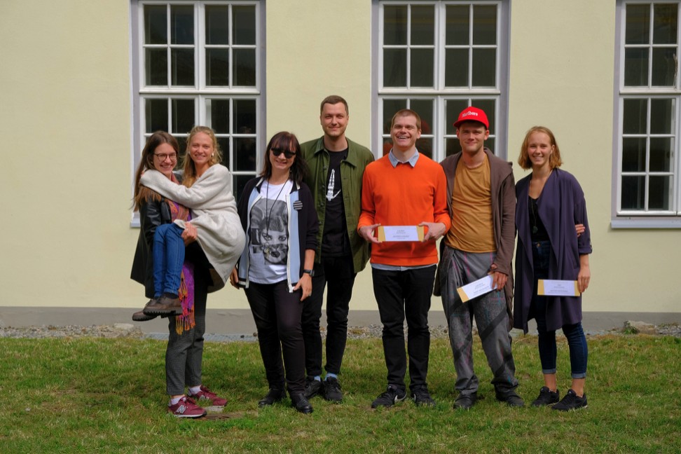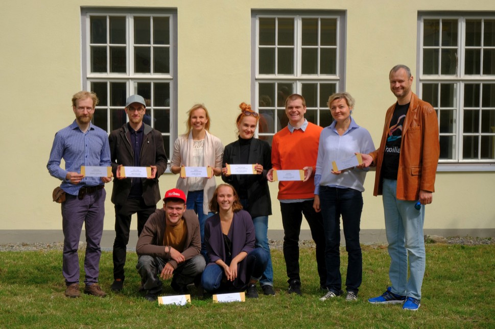 Kolleegipreemia laureaadid: Mihkel “Osavnäpp” Vooglaid, Priit “Loov Jõud” Põldma, Laura “Igiliikur” Nõlvak, Liisi “Hall Kardinal” Tegelmann, Mirko “Lipulaev” Rajas, Annika “Pauk Luuavarrest” Land-Reisser ja Leino “Pauk Luuavarrest” Rei, Mart “Ladvaõun” Müürisepp, Getter “Pärl” Meresmaa. Foto Indrek Rammus.